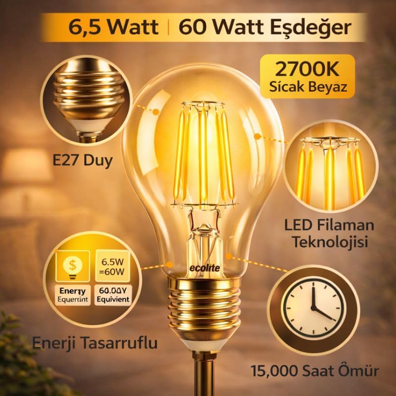 TASARRUFLU TEKNOLOJİ: LED teknolojisi sayesinde geleneksel ampullere kıyasla elektrik tüketiminde %80'e varan tasarruf sağlar ÖZEL TASARIM: Rustik dekoratif amaçlı tasarlanmış, vintage tarzda şık görünümlü ampul KONFORLU KULLANIM: Titreşimsiz ışık teknolojisi ile göz yorgunluğunu önler ve düşük ısı yayar IŞIK ÖZELLİKLERİ: sarı ışık rengi ile ortama hoş bir ambiyans katar TEKNİK ÖZELLİKLER: IP20 koruma sınıfı ile iç mekan kullanımına uygun, E14 duy tipine sahip Rustik Led Filament Ampul 4 Watt E14 Duy Sarı Işık Dekoratif Aydınlatma (1, Şeffaf Cam C35)