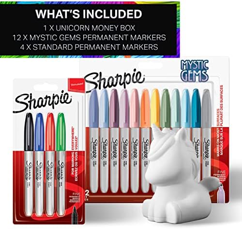 Tasarruflarınızla yaratıcı olun Bu eğlenceli hediye set, renklendirmeniz, özelleştirmeniz ve karalamanız için 16 Sharpie kalemi ve bir tek boynuzlu at para kutusu içerir Olağanüstü esnek mürekkep çabuk kurur ve solmaya ve suya karşı dayanıklıdır.Kalın veya ince nokta, etkileyici izler bırakmak için mükemmeldir Sharpie, çabuk kuruyan ve hem suya hem de solmaya karşı dirençli mürekkebe sahiptir. Sharpie Uçlu Permanent Kalıcı Markör Kumbara Hediyeli 16lı Set, Tek boynuzlu At