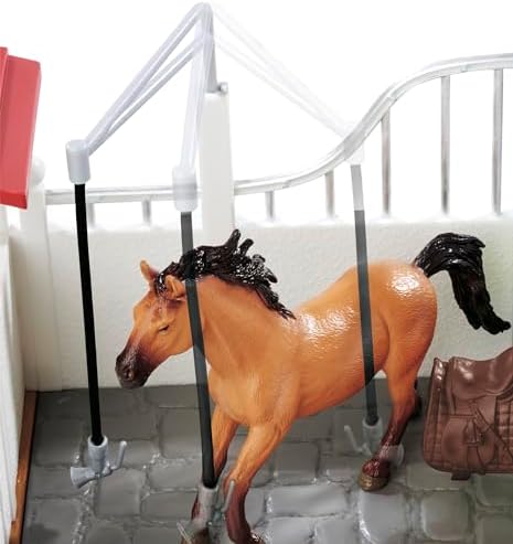 At setinde bir at figürü, küçük bir kedi, eyer, dizgin ve bakım gereçleri gibi aksesuarlar bulunmaktadır SIMBA, 104342646, At Ahırı Oyun Çiftliği, At ve Kedi Figürü, Açılabilir Parçalar, Aksesuarlı, Rol Yapma Oyun Seti