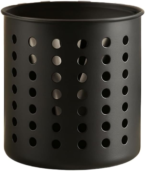 Siyah Silindir Plastik Kaşıklık – Modern Tasarımlı, Delikli Havalı Yapı, Dayanıklı ve Şık Mutfak Düzenleyici