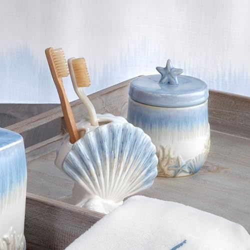 soyut kıyı koleksiyonu, deniz kabuğu kabuklarından, deniz yıldızlarından ve mavi ve bej tonlarında yelpaze mercanlarından oluşan geleneksel bir kıyı tasarımıdır. Banyo vahanızı soyut Coastal diş fırçası tutucusunun güzel kıyı havası ile dekore edin. Figür şeklindeki seramik parça, mavi ve bej renkli fırça darbelerinde elle boyanmış detaylara sahip bir deniz yıldızı kaidesi tasarımına sahiptir. Yüksek kaliteli malzemeler – bu diş fırçası tutucu ince seramikten üretilmiştir. Elde yıkama Diğer soyut kıyı aksesuarlarıyla kombine edilebilir: Sabunluk, duş perdesi ve kancalar, kupalar, mendil kapakları ve daha fazlası. 1969'dan beri. Soyut Coastal diş fırçası tutucu, çok renkli