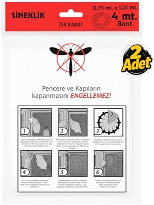 Tek Kanat Pratik Sineklik, 0.75 m x 1.25 m Tül, Kapı & Pencere Uyumlu, 4 m Yapıştırma Bantlı (2 Adet)