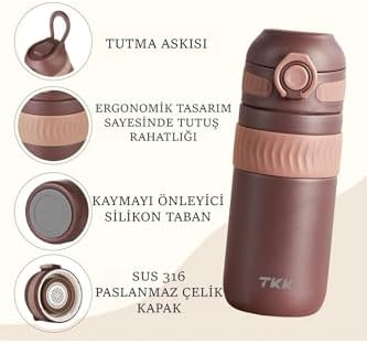Paslanmaz Çelik (SUS316) 6 Saat /Soğuk 450ml TKK 450ml Rahat İçim Çift Yalıtımlı Paslanmaz Çelik Termos Matara (Yeşil) TKK 450ml Rahat İçim Çift Yalıtımlı Paslanmaz Çelik Termos Matara (Yeşil)