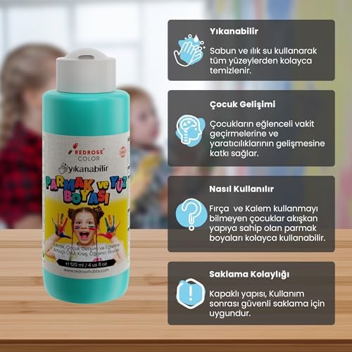 Dayanıklı yapısıyla uzun süre kullanılabilir Turkuaz Parmak Boyası 120 ml