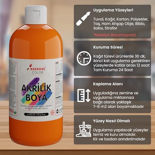 Dayanıklı yapısıyla uzun süre kullanılabilir Turuncu Akrilik Boya 500 gr Turuncu Akrilik Boya 500 gr