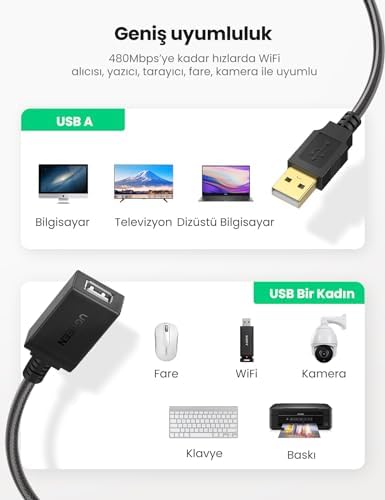 Aktif USB 2.0 yüksek hızlı tekrarlayıcı kablosu USB kablolarınızın “hareket alanını” genişletir – veri kaybı veya aktarım bozukluğu olmadan. USB uzatma kablosu yüksek kaliteli elektronik ile donatılmıştır ve WLAN kartları, 3G kartlar, WiFi alıcıları, yazıcı, tarayıcı, monitör, kameralar, fareler, klavyeler, USB bellekler ve diğer USB-C bilgisayar aksesuarları vb. gibi uzak duran çevre cihazlarınızı bağlamak için idealdir. Uzunluğu sayesinde USB tekrarlayıcı kablosu cihazlarınızı bağlarken mümkün olan en yüksek esnekliği sunar. İhtiyaç halinde iki tekrarlayıcı kablosunu arka arkaya bağlayabilirsiniz. (Bunun için aktif bir tüketici gereklidir). Aktif USB 2.0 uzatma kablosu size çok daha geniş bir menzil sunar, çünkü aktif elektronik cihazlarınızın uzun mesafelerde bile düzgün çalışmasını sağlar – maks. 480 Mbit/s veri hızı. Oksijensiz bakır tel çekirdek, üçlü koruma, altın kaplama kontaklar ve ABS + PVC muhafazalar görünür dayanıklılık ve daha uzun kullanım ömrü sağlar, böylece sorunsuz sinyal üretimi ve kayıpsız veri aktarımı sağlar. USB 2.0 Uzatma Kablosu ile aktif Wi-Fi amplifikatör, 5 Metre