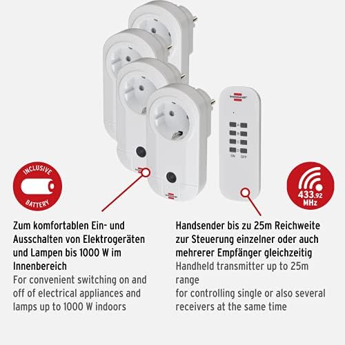 Elektrikli Cihazların Açıp Kapatmak İçin Güvenli ve Konforlu bir Çözüm 1000 W'a Kadar olan Elektrikli Ev Aletlerinin ve Lambaların Uzaktan Kumandasıyla Kolayca Açıp Kapatmanızı sağalar 25 Metreye Kadar Kumanda Menzil Uzaktan kontrol seti, RCS 1000 N, Uzaktan Kumandalı priz seti (El kumandası ve çocuk emniyetli) Renk: beyaz