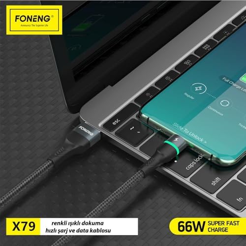 X79 66w Usb To Type-c Led Işıklı Şarj Ve Data Kablosu ip Örgülü