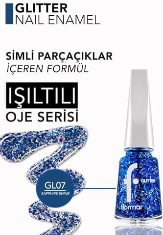 Kolay uygulanabilir formülü ile tırnaklarınızı güzelleştirir Safir parlaklığı Simli yapı Yarı Transparan & Parlak Bitişli Simli Oje GL07 SAPPHIRE SHINE
