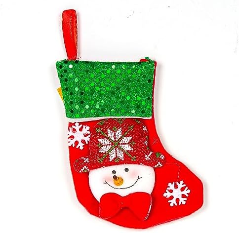 Çoraplar Yılbaşı Süsü Çorap Parlak Pullu Kardan Adam Figürlü Kırmızı-Yeşil 12×16 Cm.