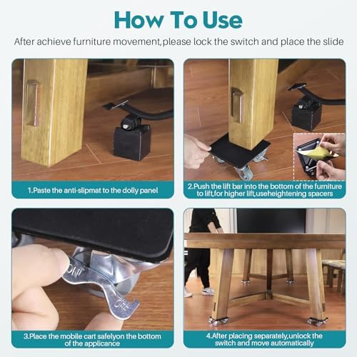 Yükseltme Büyük Mobilya Dolly, 5 360 ° Döndürme Tekerleği ve Frenli Mobilya Taşıyıcıları, Maksimum Yük 3500 lbs, Ağır Mobilya Kanepe Dolabı Buzdolabı için Mobilya Hareketli Aletler